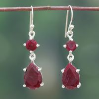 Polished 7-Carat Faceted Pear and Round Ruby Dangle Earrings 'Capricious Elegance' Item ID: 2671624111