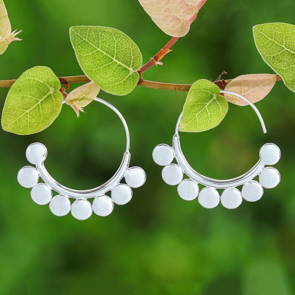 Polished Abstract-Themed Sterling Silver Half-Hoop Earrings 'Paradisial Dots' Item ID: 2671796539