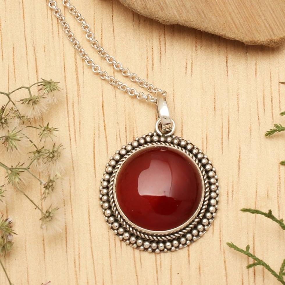 Polished and Oxidized Carnelian Cabochon Pendant Necklace 'Fiery Cycle' Item ID: 2671668036