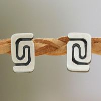 Polished and Oxidized Greca Sterling Silver Stud Earrings 'Greca Nobility' Item ID: 2671638966