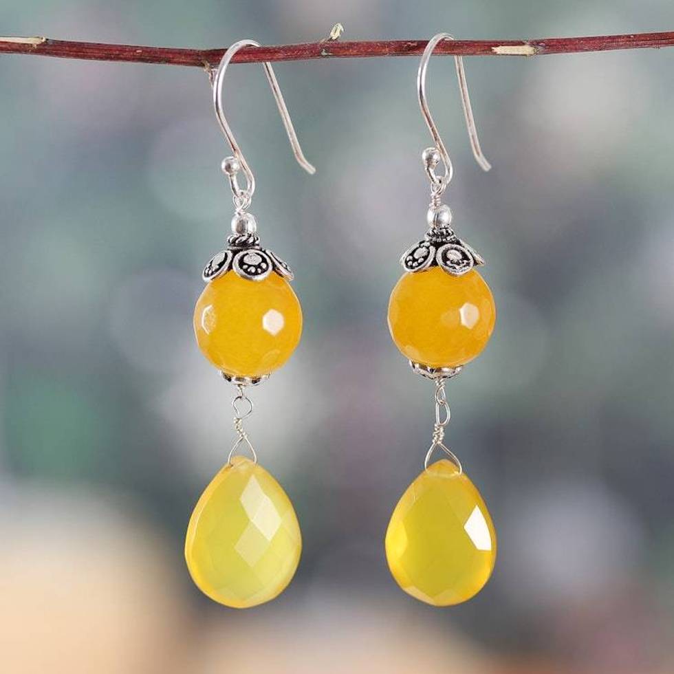 Polished and Oxidized Yellow Chalcedony Dangle Earrings 'Yellow Legacy' Item ID: 2676664350