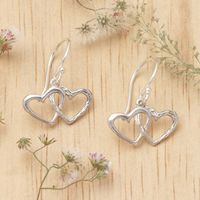 Polished and Textured Sterling Silver Heart Dangle Earrings 'Joined Love' Item ID: 2671583972