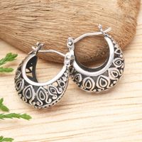 Polished Armadillo-Patterned Sterling Silver Hoop Earrings 'Lady Armadillo' Item ID: 2671670826