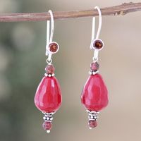 Polished Beaded Dangle Earrings with Garnet and Agate Gems 'Intense Beauty' Item ID: 2671786528