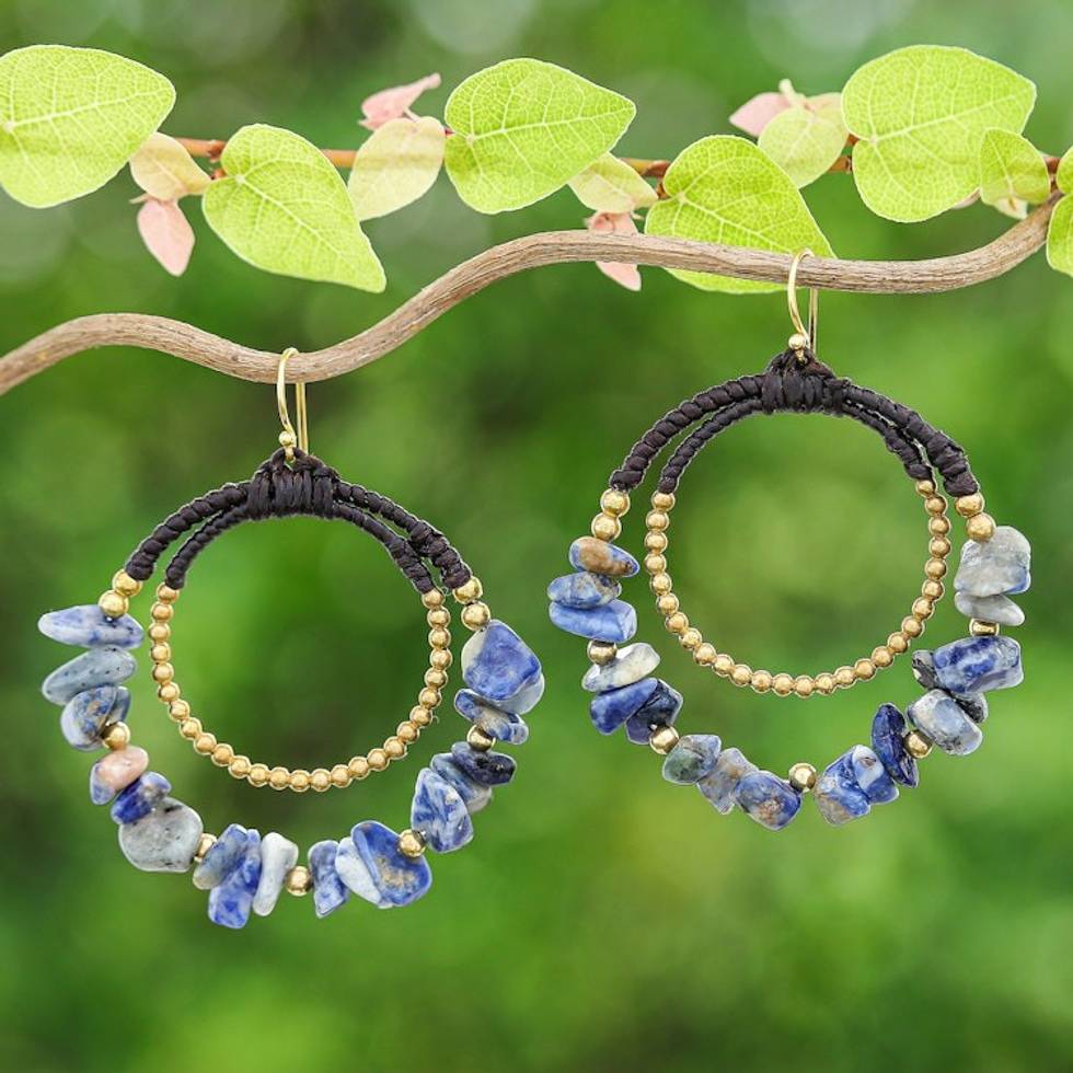 Polished Brass and Sodalite Beaded Dangle Earrings 'True Goddess' Item ID: 2671797458
