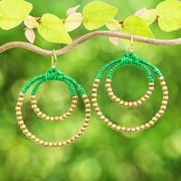 Polished Brass Beaded Dangle Earrings in Green 'My Vital Aura' Item ID: 2671798205
