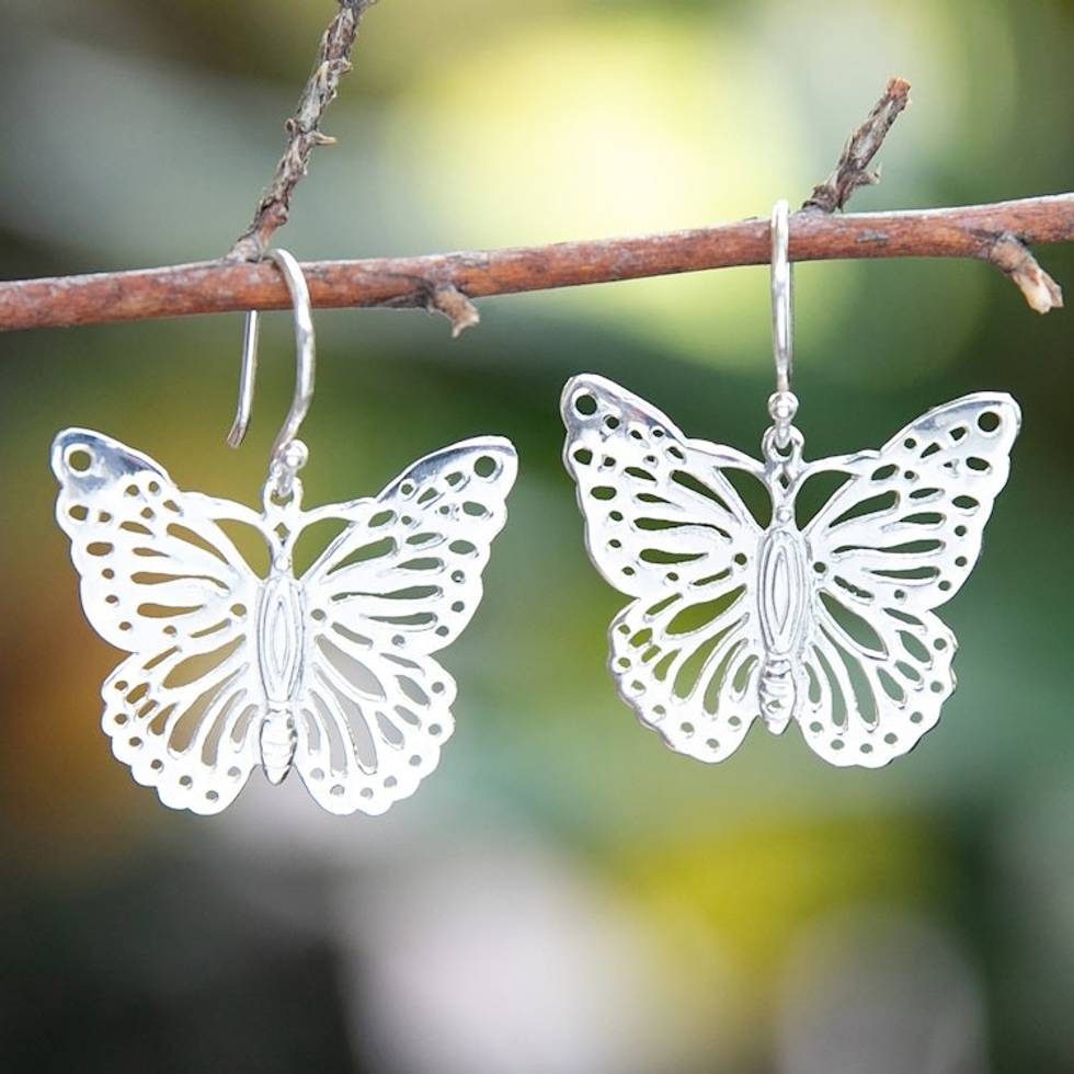 Polished Butterfly-Shaped Sterling Silver Dangle Earrings 'Fairy Butterfly' Item ID: 2671669487
