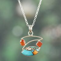 Polished Carnelian and Recon Turquoise Pendant Necklace 'Sunset Sky' Item ID: 2671623283