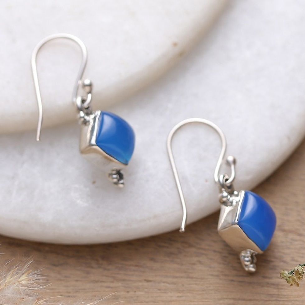 Polished Chalcedony Cabochon Dangle Earrings from India 'Healing Jewels' Item ID: 2671783161