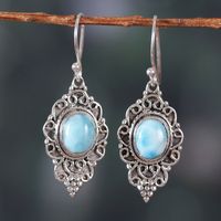 Polished Classic Natural Larimar Dangle Earrings from India 'Classic Heaven' Item ID: 2671781631