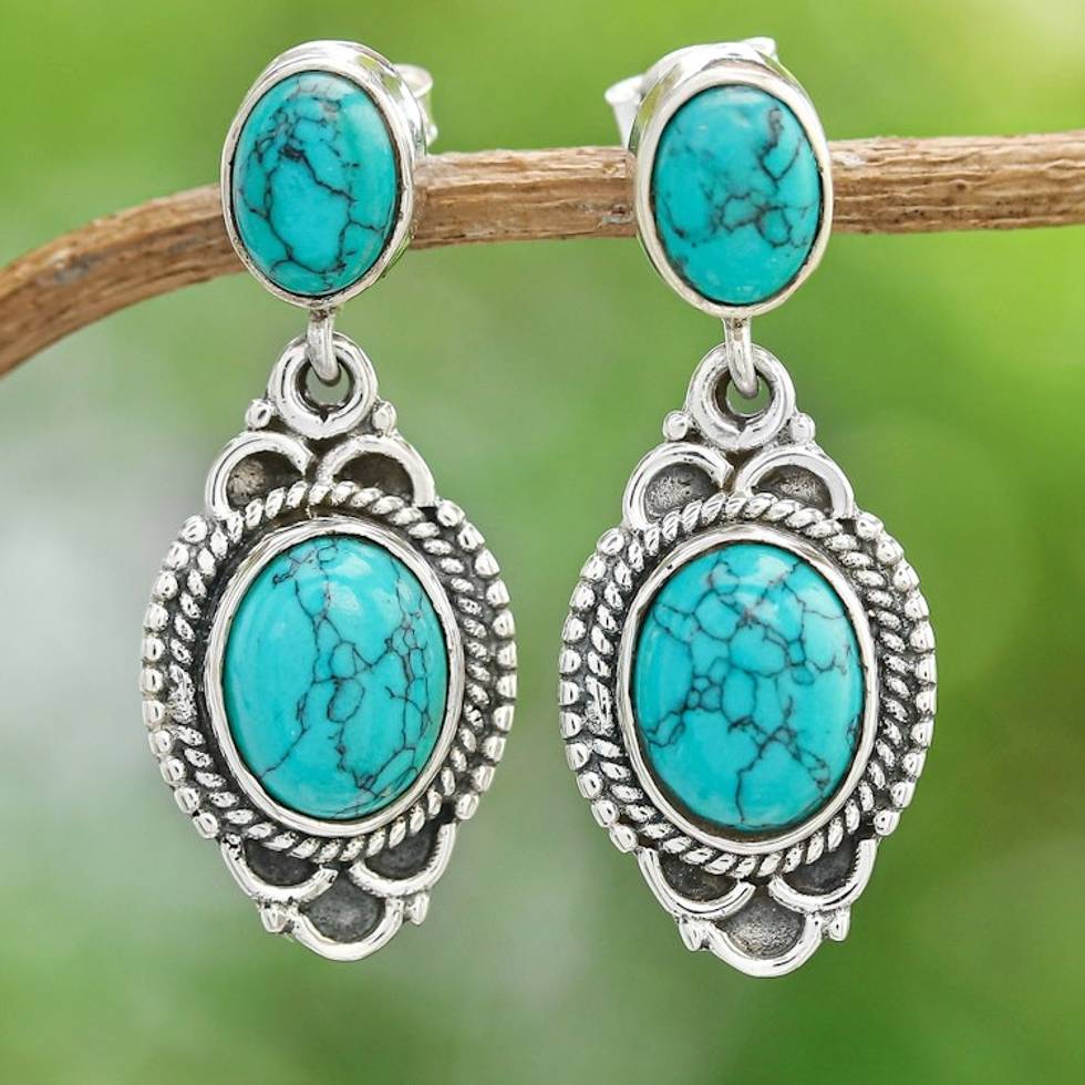 Polished Classic Reconstituted Turquoise Dangle Earrings 'Antique Lagoon' Item ID: 2671640992