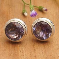 Polished Classic Sterling Silver Stud Earrings with Amethyst 'Purple Divine Feminineness' Item ID: 2671764535