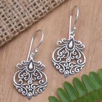 Polished Classic Vine-Themed Sterling Silver Dangle Earrings 'The Leaf Life' Item ID: 2671747148