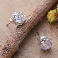 Polished Cubic Zirconia Sterling Silver Stud Earrings 'Chic Sparkle' Item ID: 2671624922