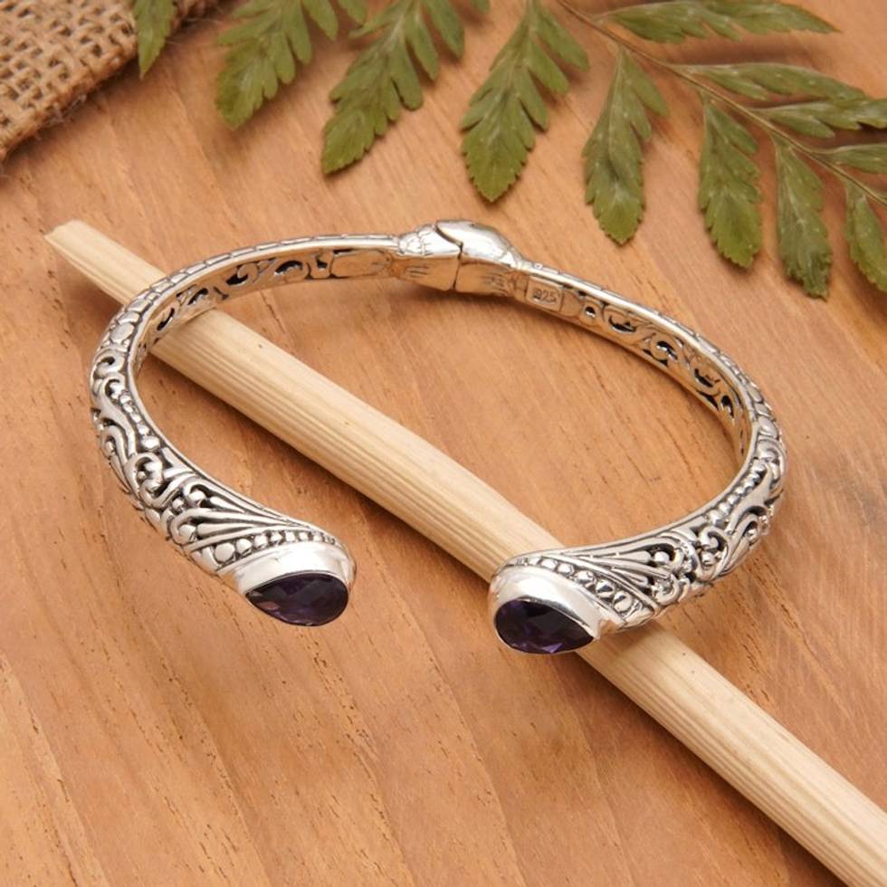 Polished Cuff Bracelet with Over-Two-Carat Amethyst Jewels 'Purple Tegalalang' Item ID: 2671764652