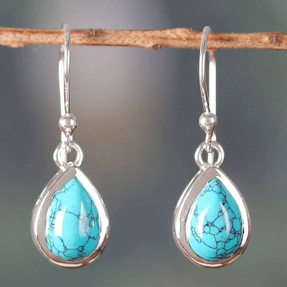Polished Drop-Shaped Calcite Dangle Earrings from India 'Sky Droplets' Item ID: 2671781968