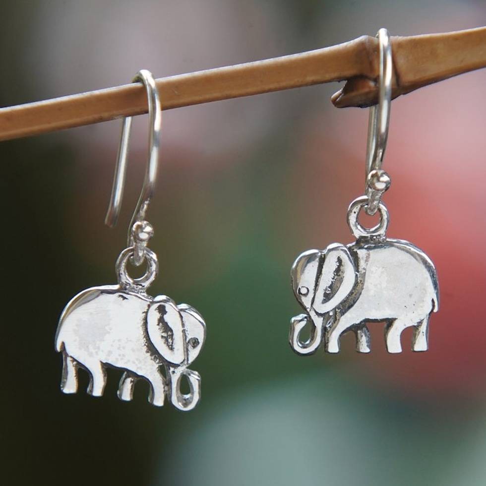 Polished Elephant-Themed Sterling Silver Dangle Earrings 'Young Elephants' Item ID: 2671765165