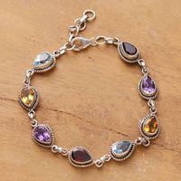 Polished Faceted Multi-Gemstone Link Bracelet from India 'Sparkling Spell' Item ID: 2676663849