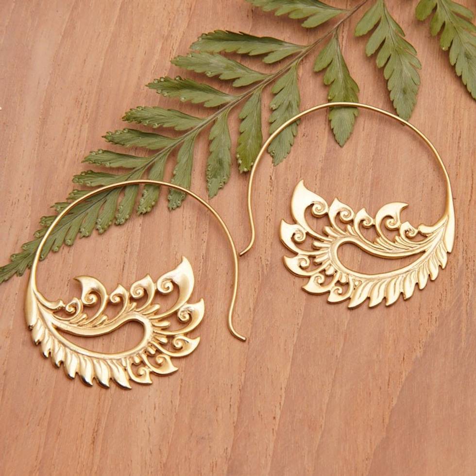 Polished Feather-Themed 18k Gold-Plated Drop Earrings 'Feathers of Love' Item ID: 2671762936
