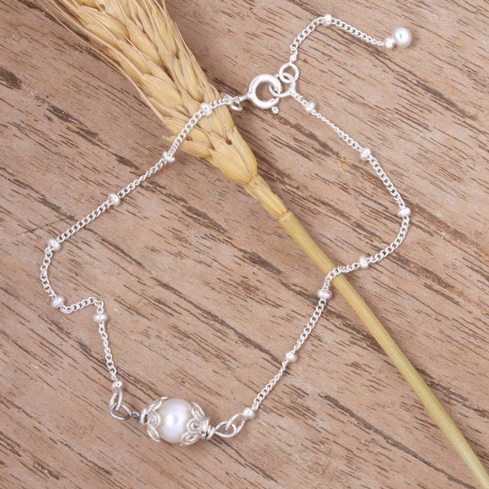 Polished Floral Grey Cultured Pearl Pendant Bracelet 'Only You Me' Item ID: 2671764523