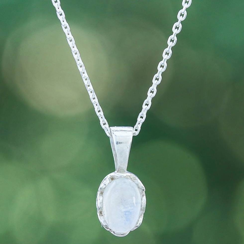 Polished Floral Natural Rainbow Moonstone Pendant Necklace 'Harmonious Light' Item ID: 2671796578