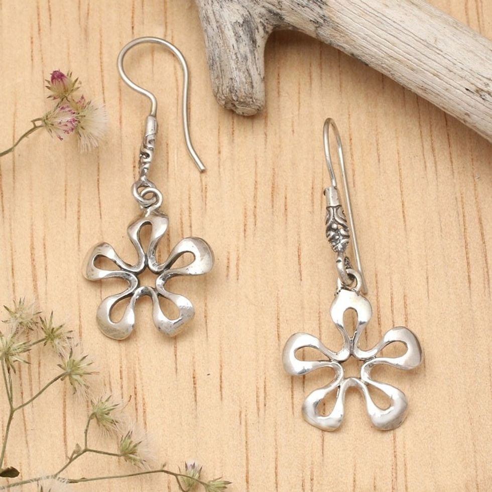 Polished Floral Sterling Silver Dangle Earrings Made in Bali 'Lavender Light' Item ID: 2671765177