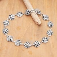 Polished Floral Sterling Silver Link Bracelet from Bali 'Flower Heart' Item ID: 2671574045