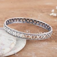 Polished Flower-Themed Sterling Silver Bangle Bracelet 'Spring Beauty' Item ID: 2671623901