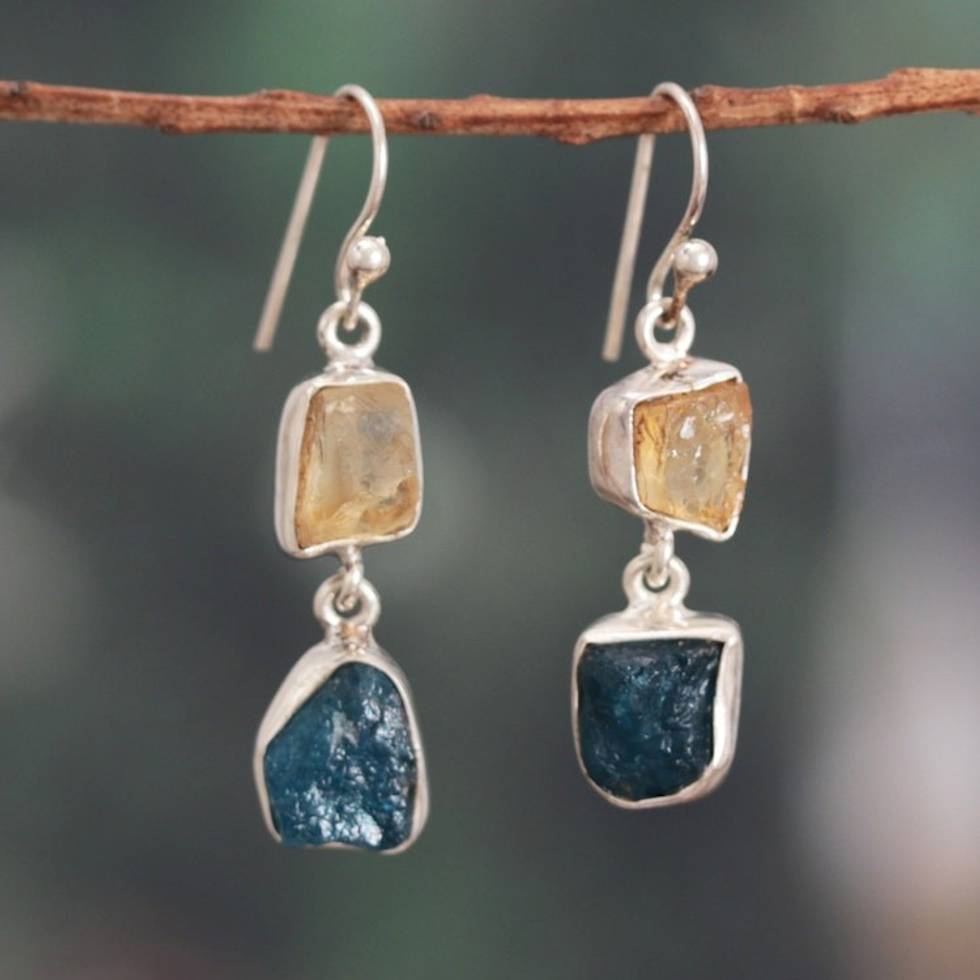 Polished Freeform Citrine and Apatite Dangle Earrings 'Joy of the Intellectual' Item ID: 2671670978