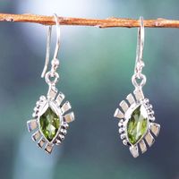 Polished Geometric Sterling Silver Peridot Dangle Earrings 'Fortunate Eyes' Item ID: 2671786999