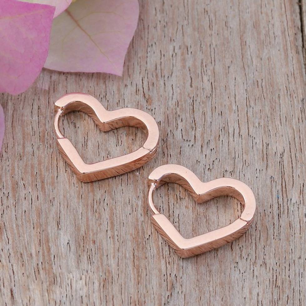 Polished Heart-Themed 18k Rose Gold-Plated Hoop Earrings 'Rose Gold of Love' Item ID: 2671646727