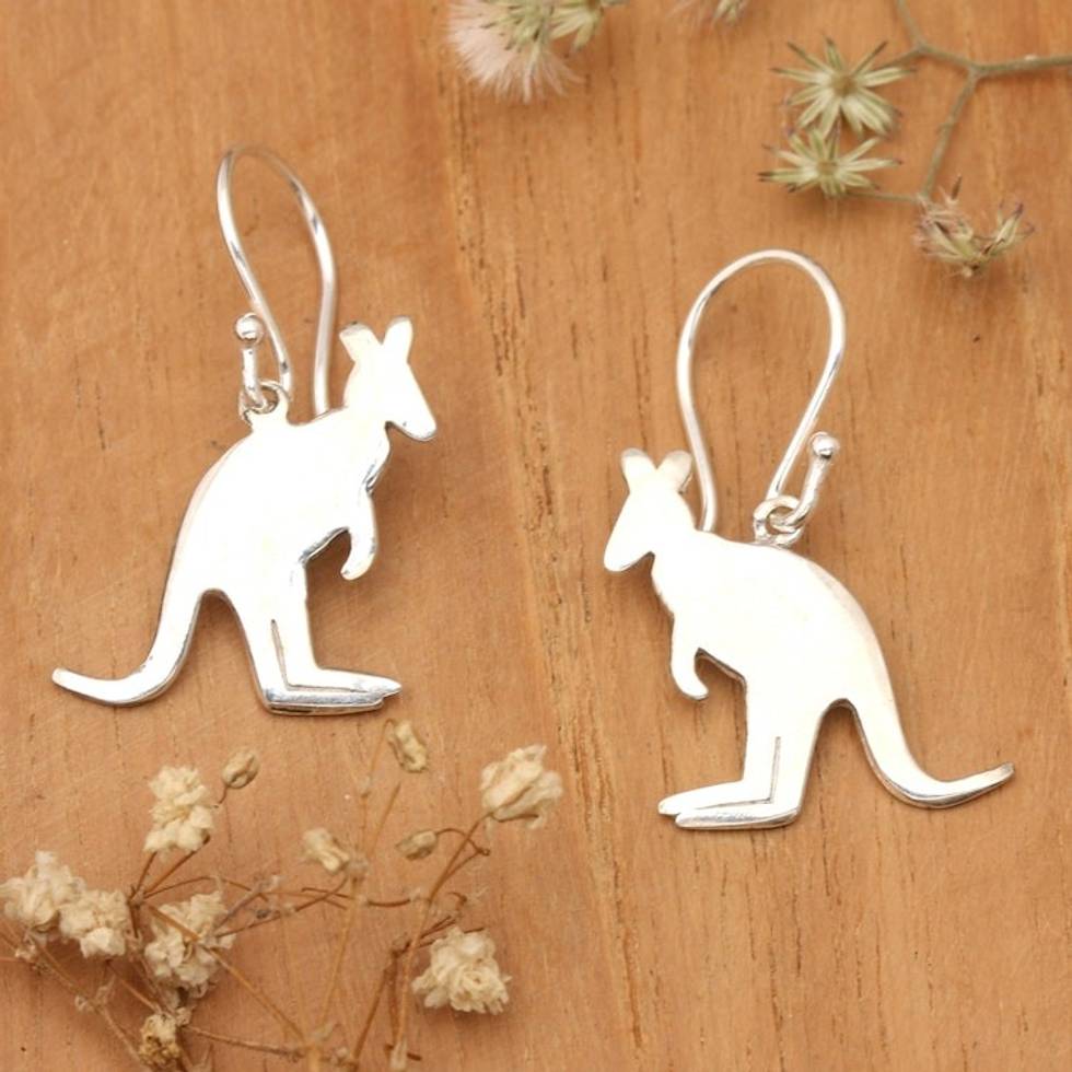Polished Kangaroo-Shaped Sterling Silver Dangle Earrings 'Kangaroo Girl' Item ID: 2671764093