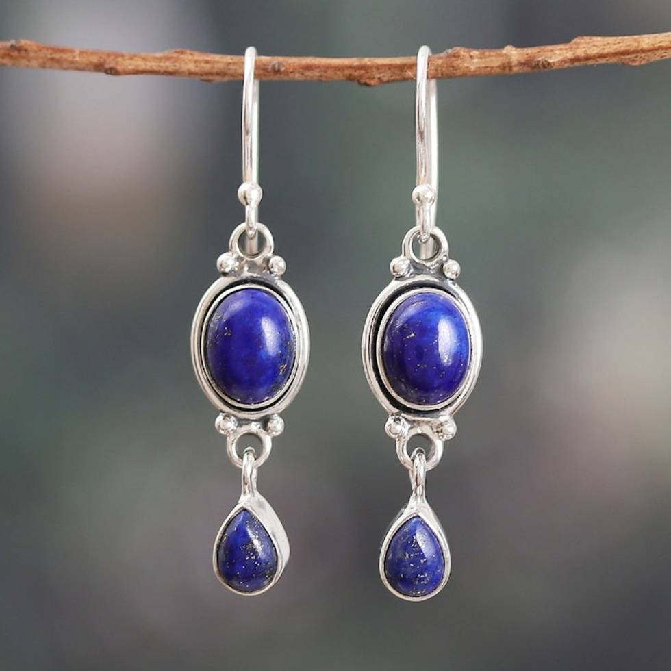 Polished Lapis Lazuli Cabochon Dangle Earrings from India 'Royal Mystery' Item ID: 2671782162