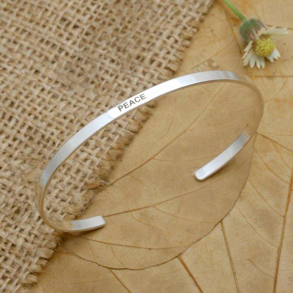 Polished Minimalist Sterling Silver Peace Cuff Bracelet 'Your Peace' Item ID: 2671764823