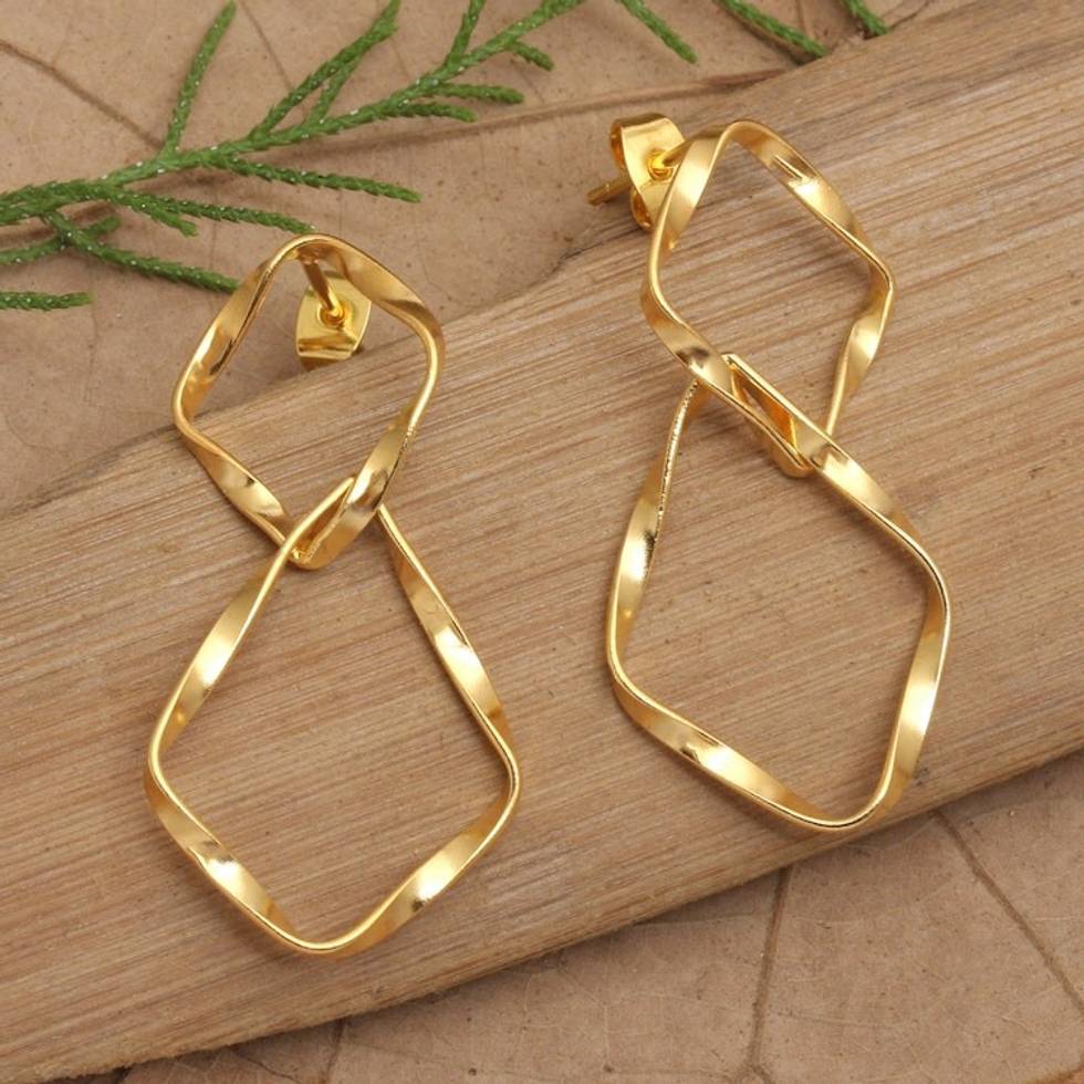 Polished Modern 18k Gold-Plated Dangle Earrings from Bali 'Twists of Triumph' Item ID: 2671669939