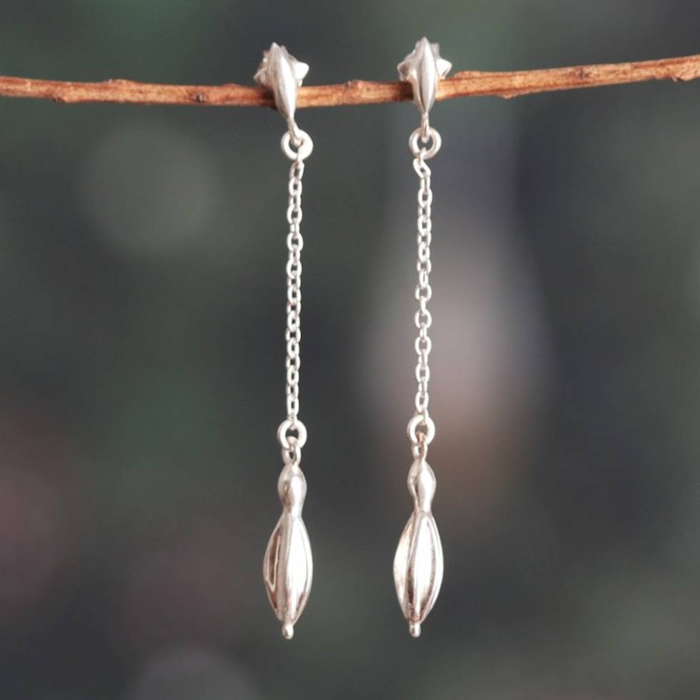 Polished Modern Sterling Silver Dangle Earrings from India 'Sublime Dance' Item ID: 2671782296