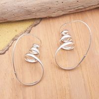 Polished Modern Sterling Silver Drop Earrings from Bali 'Light Tornadoes' Item ID: 2671763038