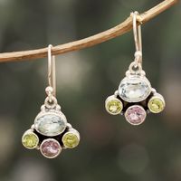 These earrings are nicer than I expected. The blue topaz has more color ! The peridot and amethyst and great too. All in all a lovely pair of earrings that I am proud to wear. Love the different stone shapes. You can count on the wonderful craftmanship in Niru's products.