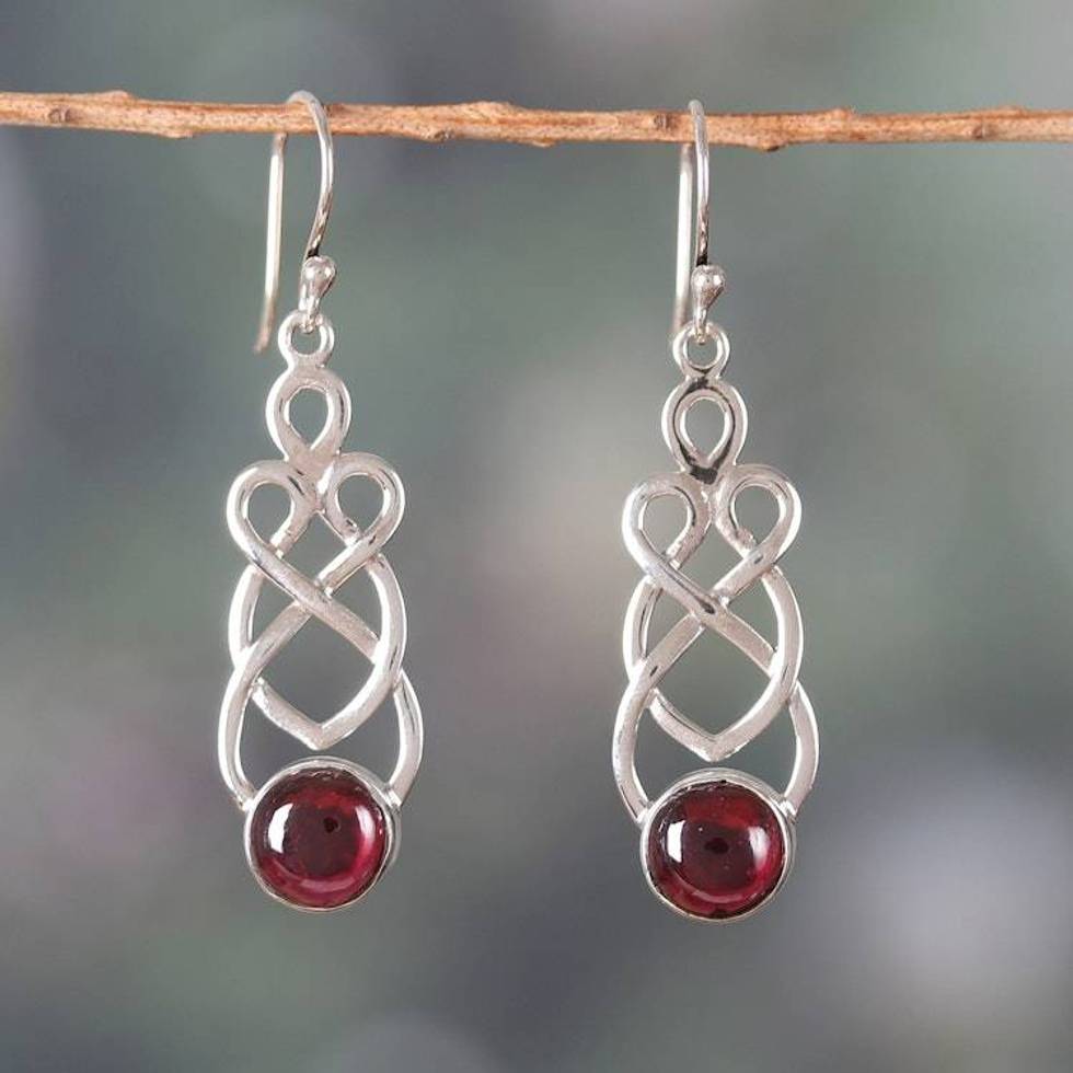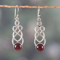 Polished Natural Garnet Dangle Earrings from India 'Passionate Twists' Item ID: 2676664066