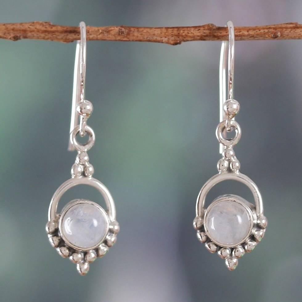 Polished Natural Rainbow Moonstone Dangle Earrings 'Ethereal Allure' Item ID: 2671817734
