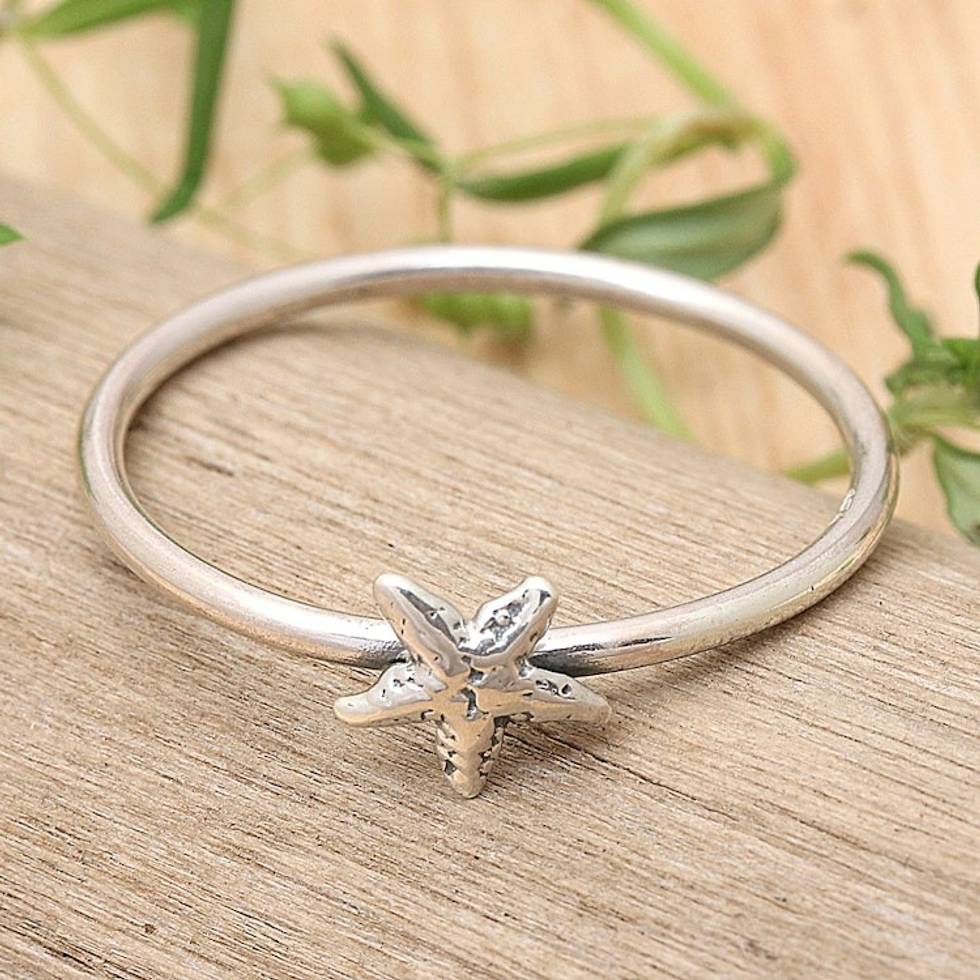 Polished Oxidized Sterling Silver Starfish Band Ring 'Cute Starfish' Item ID: 2671765521