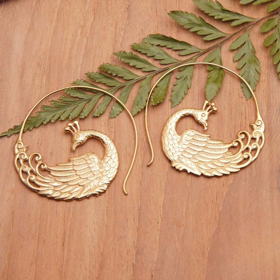 Polished Peacock-Themed 18k Gold-Plated Drop Earrings 'Ethereal Peacock' Item ID: 2671763320