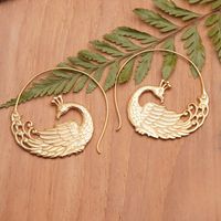 "Divine and luxurious are the words that best describe these 18k gold-plated drop earrings, crafted in the traditional Balinese jewelry style. Komang Budiarta presents the design in a high polish finish with charming peacocks as the center elements, both symbolizing power and beauty."