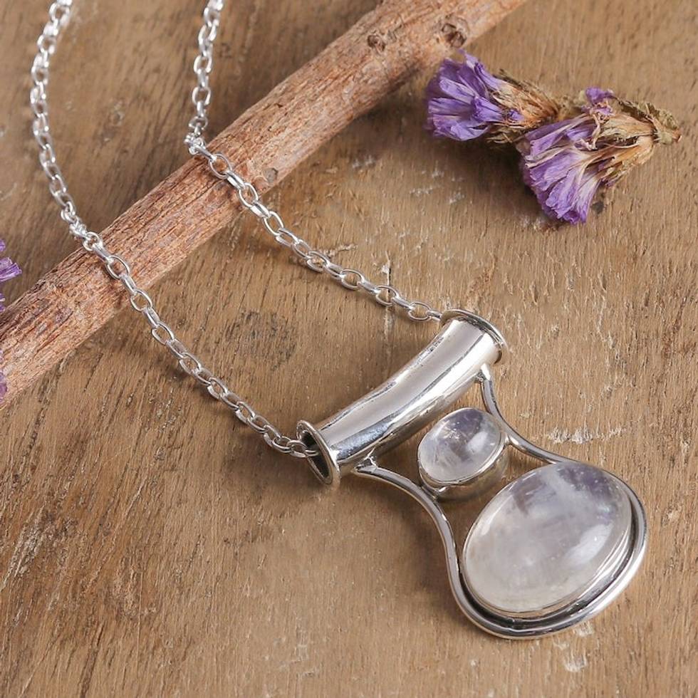Polished Pendant Necklace with Natural Rainbow Moonstones 'Simply Mystic' Item ID: 2671781484