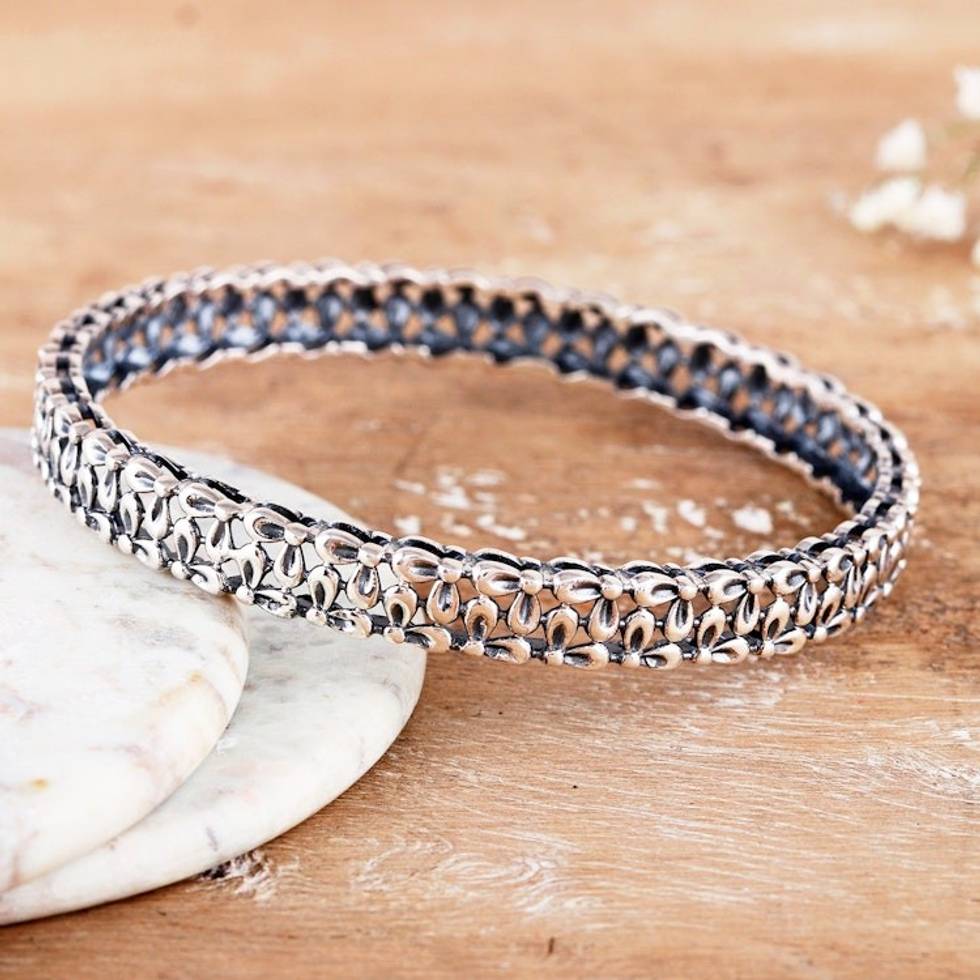 Polished Petal-Themed Sterling Silver Bangle Bracelet 'Petal Beauty' Item ID: 2671786921