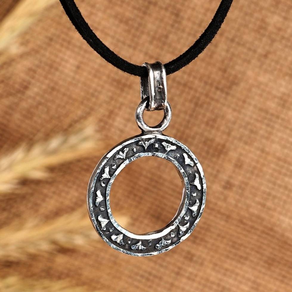 Polished Round Floral Sterling Silver Pendant Necklace 'Mountain Halo' Item ID: 2669935517