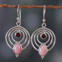 Polished Round Garnet and Opal Dangle Earrings from India 'Orbiting Romance' Item ID: 2671781634