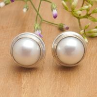 Polished Round Sterling Silver Stud Earrings with Pearls 'Purity Core' Item ID: 2671821822
