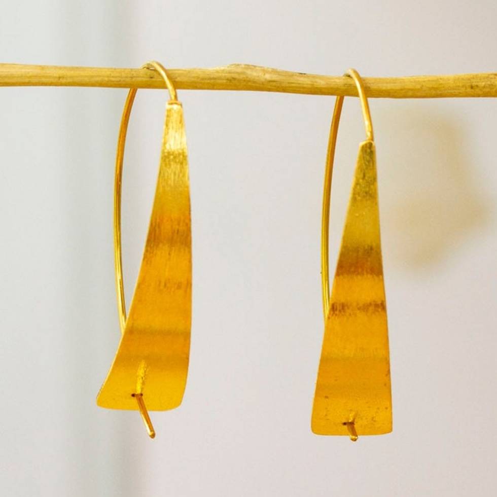 Polished Semi-Abstract Modern 24k Gold-Plated Hoop Earrings 'Essentiality' Item ID: 2671639264