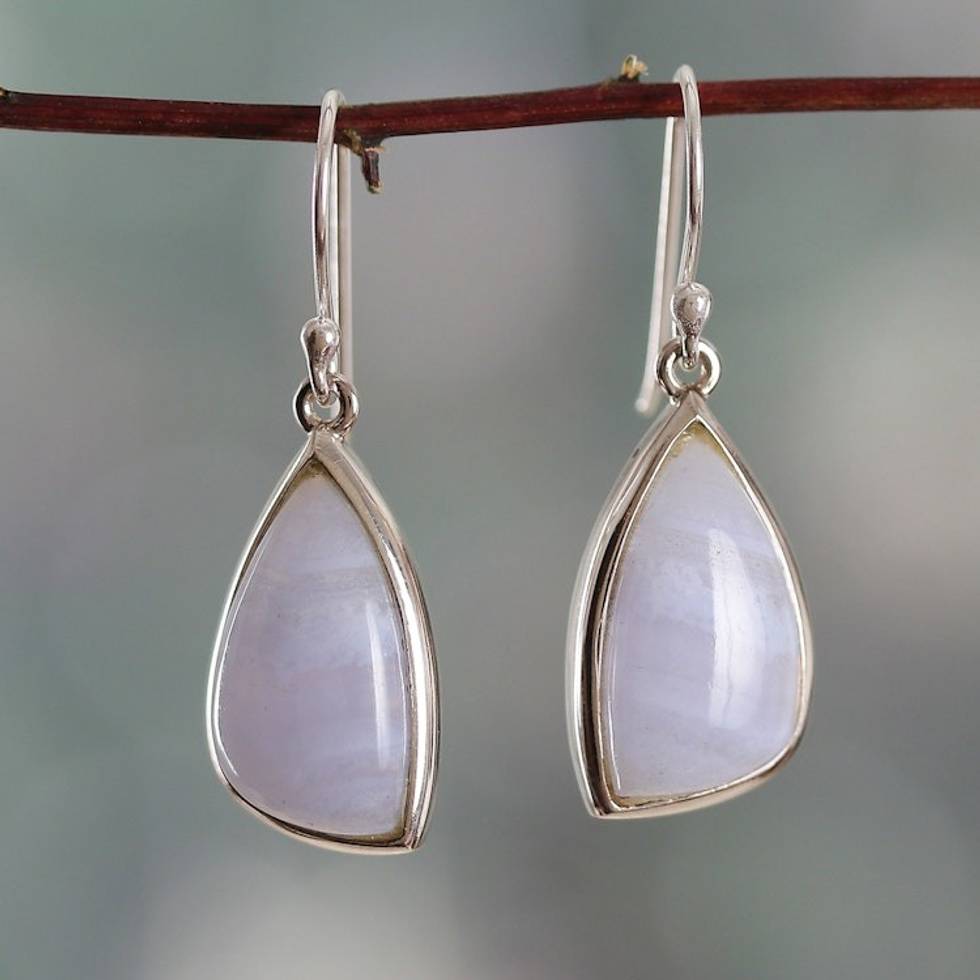 Polished Silver Dangle Earrings with Lace Agate Stones 'Lacy Blue' Item ID: 2671781418